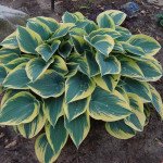 Потужний та красивий сорт хости. Висота рослини до 90см. Листя сіро - блакитне, з нерівномірною жовт..